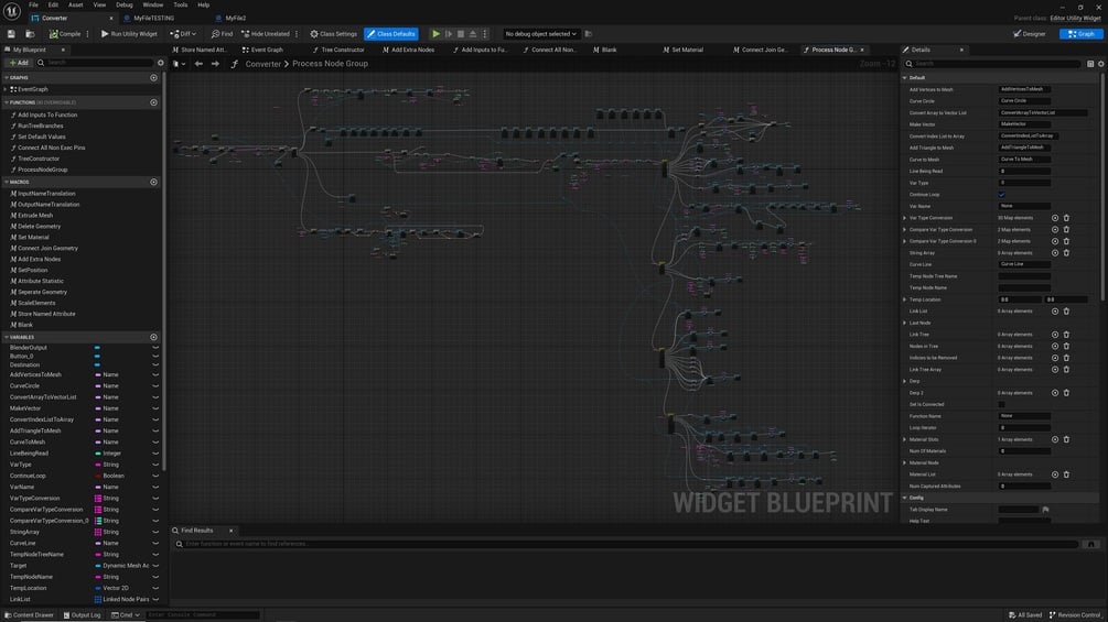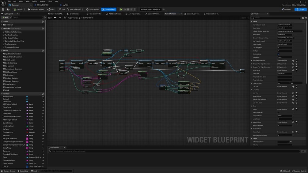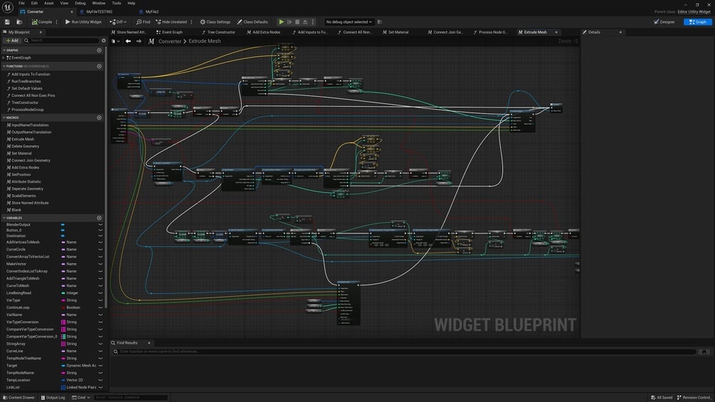 Also included is a rudimentary "export" python script that will export any node group to a text file which is later read by the Unreal Editor Utility Widget "importer". The importer will create a new dynamic mesh file.